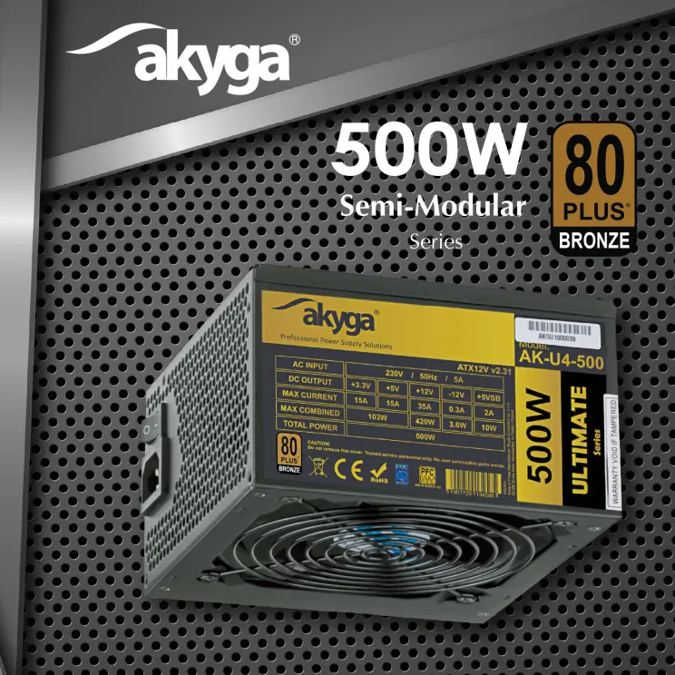 Počítačové napájecí zdroje řady AK-U4-500 Ultimate jsou spolehlivým zdrojem napájení pro PC jednotky s výkonnou grafickou kartou. Je ideální pro standardní PC soupravy i pro herní PC.